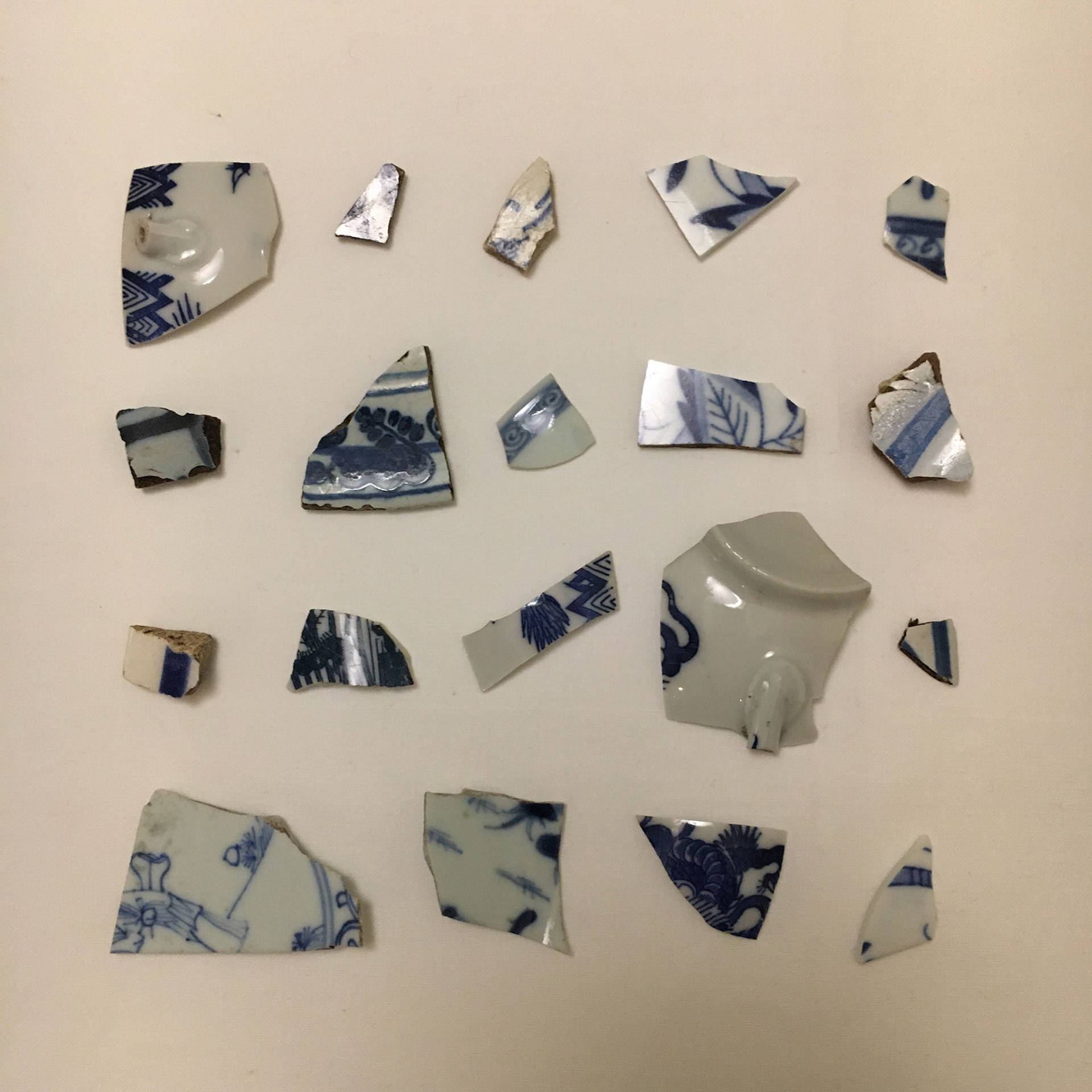 Ik begon mijn onderzoek met fotograferen en tekenen. Zo zou ik de scherven op meerdere manieren goed hebben bekeken, wat de bedoeling was. Ook ordende ik de scherven in verschillende categorieën en fotografeerde dat op een witte ondergrond. Toen had ik alles wel zo'n beetje gehad. Het lijmen van scherven, het verbinden geïnspireerd op de Japanse traditie met goud, mozaïek-tegel maken, bouwen en afbreken, laten vallen in slowmotion. Na lang vastlopen begon ik al mijn scherven weer van heel dichtbij te fotograferen, maakte daar composities van op basis van kleur en print en bundelde ze in een boekje.
